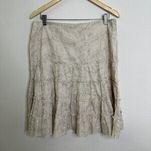 Unbranded Beige Skirt Tiered Floral Embroidered Size 12 Knee Length Side Zipper