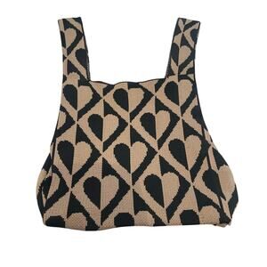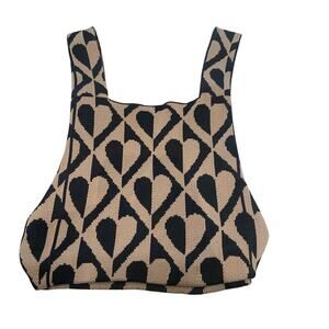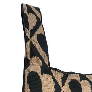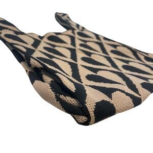 Unbranded Black Beige Heart Print Knit Mini Tote Bag