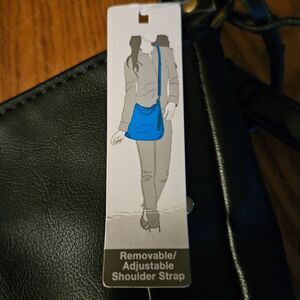 This black faux leather hobo bag features a soft, slouchy design that exudes casual elegance. Crafted from faux leather, it offers a subtle sheen and a comfortable shoulder strap for easy carrying. Its minimalist style makes it a versatile accessory for any occasion.