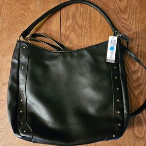 Unbranded Black Faux Leather Hobo Bag Slouchy Shoulder Purse Medium New Boho