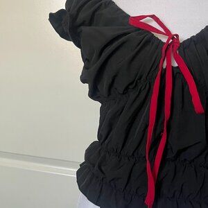 Unbranded Black Red Front Tie V-Neck Short Sleeve Crop Top Shirt Size Small