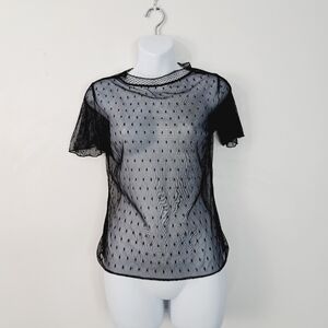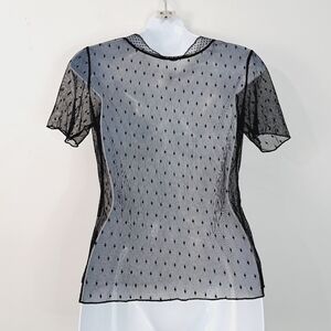 Unbranded Black Sheer Short Sleeve Swiss Dot Diamond Top