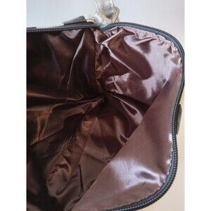Condition-wise, the bag is in Excellent Condition with one flaw: underneath the strap on one side, there is a tiny fleck of the faux leather that is missing. Otherwise, the bag has no staining/discoloration, no holes/tears/rips, no odors, and no overt signs of use. The strap is still stiff when adjusting its length, and theinterior liner shows no signs of use.