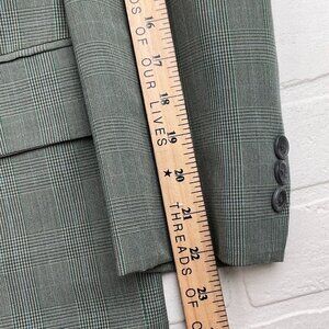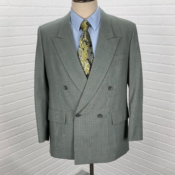Unbranded Blazer Men 40 Black Teal Blue Houndstooth Plaid Double Breasted VTG