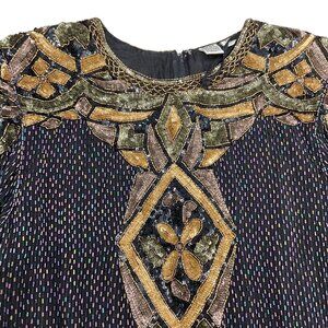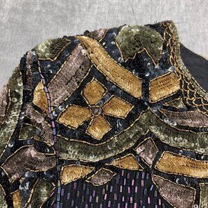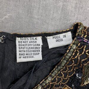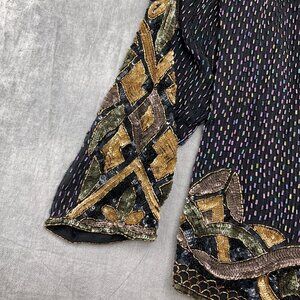 Unbranded Blouse Women Medium Black Gold Multi All Bead Floral Diamond Silk VTG