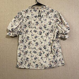 Unbranded Blouse Women's XSmall Tan Floral Pullover Short Sleeves