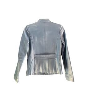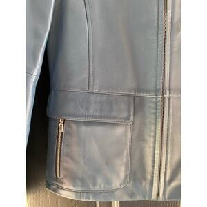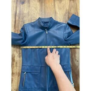 Unbranded Blue Leather Long Sleeves Zip Up Biker Jacket Size 55