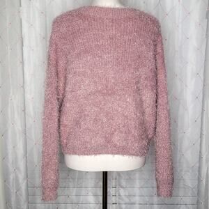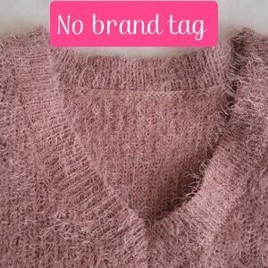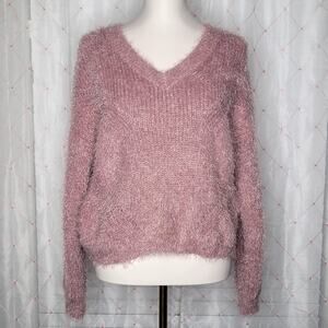 Unbranded Blush Mauve Pink Eyelash Fuzzy Nubby Pullover V Neck Sweater Sz Small