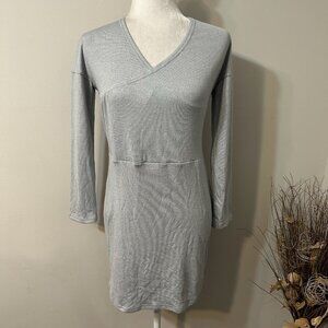 Unbranded Bodycon Mini Dress Ribbed Faux Wrap Long Sleeves Gray Metallic Sz L