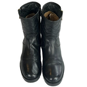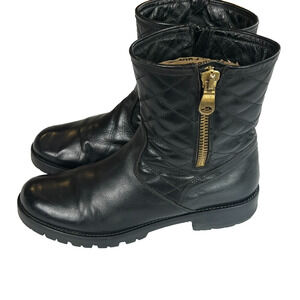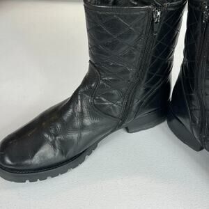 Unbranded Boots Women's 40 Black Leather Quilted Half Zip Mid Calf 1 Inch Heel