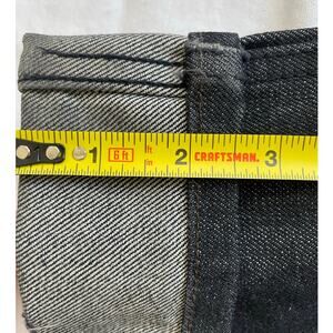 Condition: Good used condition aside from minor flaws as shown in photos (missing button and distressed edge at bottom hem of pants)
