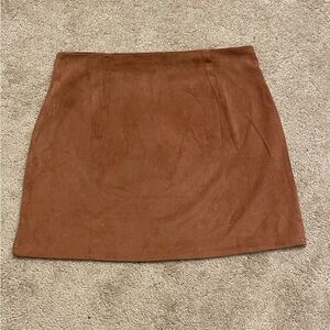 Unbranded Brown Faux Suede Mini Skirt with Gold Zipper Accents Size Large