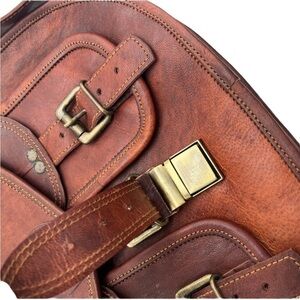 Unbranded Brown Leather Buckle Crossbody Round Saddle Hobo Bag