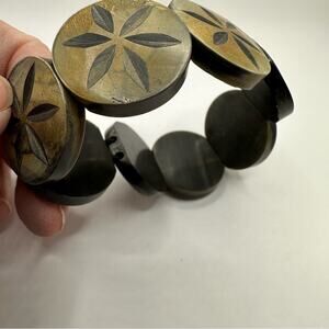 Unbranded Carved Horn Bead Stretch Bracelet Boho Bohemian Minimalist Retro