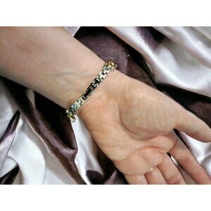 - Silver link bracelet with 3 golden cats on each side