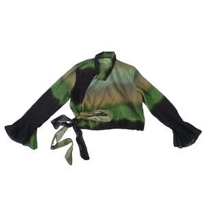 Unbranded Chiffon Sheer Ombre Wrap Front Tie Blouse Size M Green Fairy Grunge