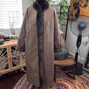 Unbranded Chocolate Brown Faux Fur Reversible Raincoat Maxi Coat
