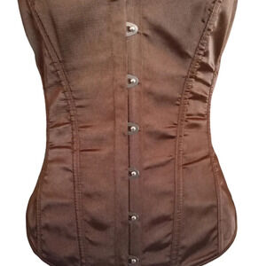 Unbranded Chocolate Brown Satin Metal Clasp Front Corset Top Size Medium