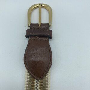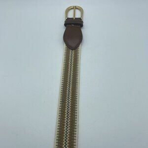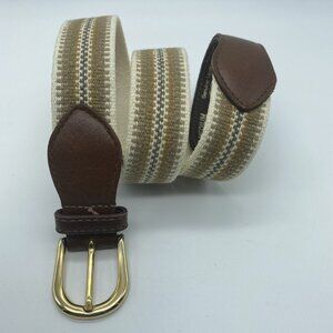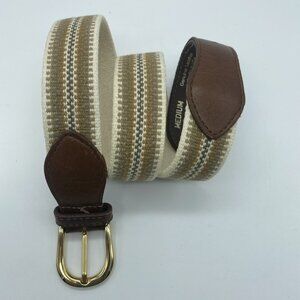 Unbranded Cream Brown Tan Cotton Canvas Belt w/ Leather Tabs 22086 Men's Size M