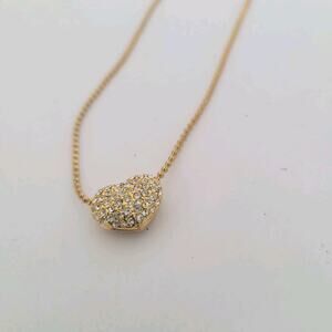 Unbranded Crystal Rhinestone Pave Heart Pedant Necklace Gold Tone 16+2" Glam