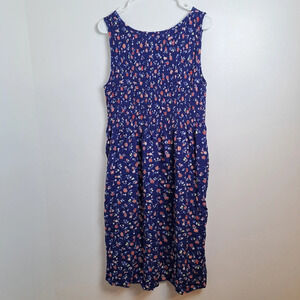 Unbranded Dark Blue Floral Smocked Girly Sleeveless Midi Dress Size Small