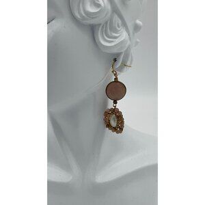 Unbranded Double Drop Faux Pearl Mauve Beaded Gold Tone Dangle Earrings