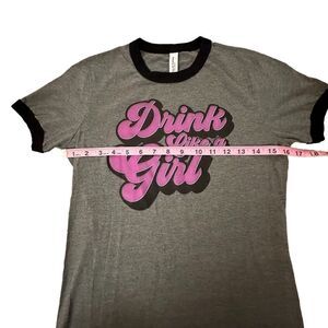 Unbranded ~ “Drink Like a Girl” ~ size Large ~ Black Ringer Grey Tee