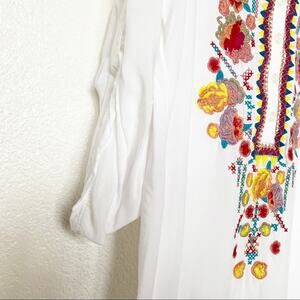 Unbranded embroidered v-neck tunic top, size small. Button detail on sleeves, wear undone or rolled up.