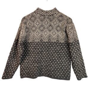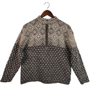 Unbranded Fair Isle Cotton Knit Sweater Women’s SZ LG? 1/4 Zip Grey/Cream GUC