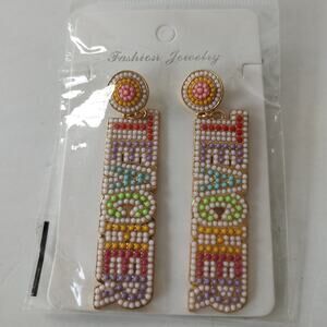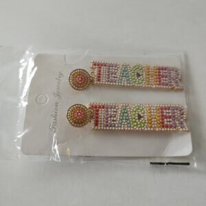 Unbranded Fashion Beaded Teacher Earrings Multi-Colored Gold Tone Post Backs.