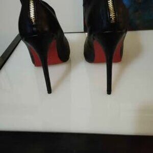 Black Faux Leather Pumps with Red bottom size 41 or US 10 5' heel with zipper backs UNBRANDED