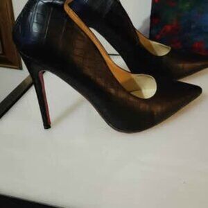 Unbranded Faux Black Leather Pumps with Red Bottom Size Women's 41 or US 10
