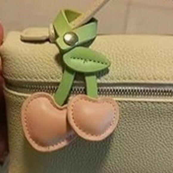 Unbranded Faux Leather Cherry Snap Bag Charm in Pink, NEW