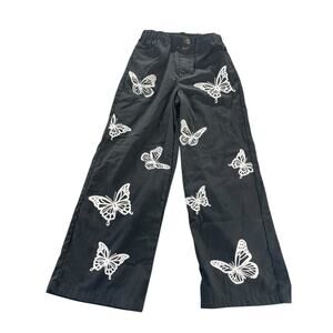 Unbranded Girls Black Butterfly Print Wide Leg Pants Youth