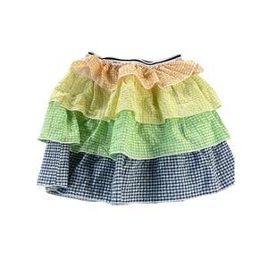 Unbranded Girls Mixed Media Tiered Multicolored Gingham Ruffle Skirt Youth