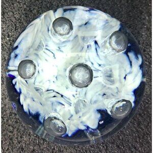 Unbranded Glass Paperweight White Blue Clear Controlled Bubbles Polished Bottom