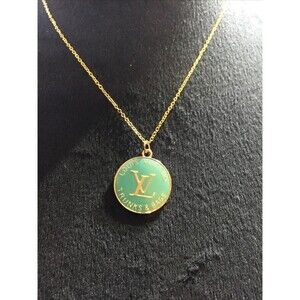 This unbranded gold tone fashion necklace features a round Trunks and Bags pendant with an aqua color, perfect for occasions like Mother's Day, Christmas, anniversaries, birthdays, and Valentine's Day. The necklace has an 18-inch gold tone rope chain with a lobster closure, making it a stylish accessory for any outfit. The charm pendant adds a touch of fashion to the overall look, making it a unique and eye-catching piece of jewelry for any jewelry lover. L - - V
