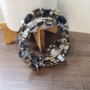 Unbranded Gray/Blue Tone Beaded Wrap Bracelet Pre-Owned Ladies Casual Office