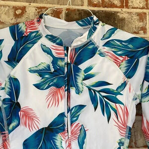 Unbranded Hawaiian Floral One Piece Long Sleeved Rash Guard Swim Suit