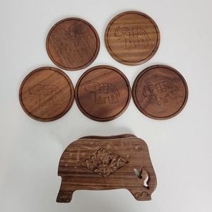 Unbranded Home Kitchen Coaster Set One Size Brown Hand Carved Wooden Elephant