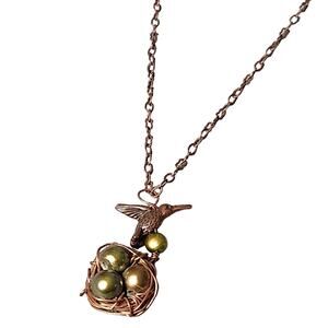Unbranded Hummingbird Wire Bird Nest Necklace in Copper & Green Feminine Dainty