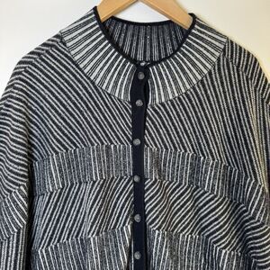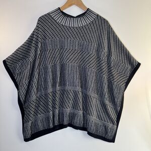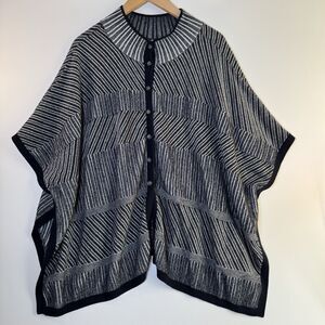 Unbranded Knit Button Down Sweater Cape Women One Size Blue Gray Striped Coastal
