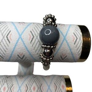 Unbranded Large Grey Bead and Sliver Stretch Bracelet. In good condition.