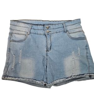 In excellent condition Unbranded Light Wash Denim Distressed Raw Hem Jean Shorts Size 16 Women's.