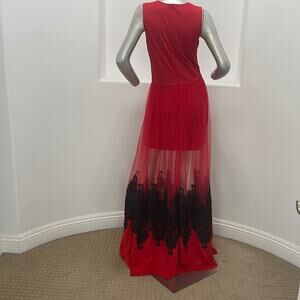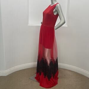 Unbranded Made in Italy Maxi Mesh Embroidered Dress Red Size L