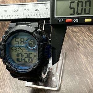 Blue and black watch, when you hit the light button it dims the face/time doesnt light watch as should. May need a new battery selling as is other features work such as stop watch, alarm, and time with day and date