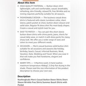 Plus sized men's casual button down short sleeve shirt. Classic white color. Simple design. Pocket on chest. Measures about 31"shoulder to hem and 38" P2P. Shirt is brand new in its original packaging.