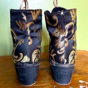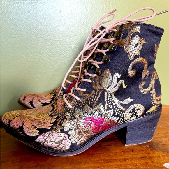 Unbranded Metallic Embroidered Retro Floral Lace Up Boho Ankle Boots Sz 40