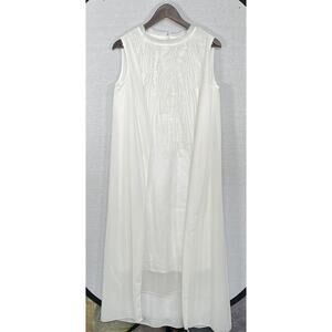 Unbranded Minimalist White Dress Women Size M Sleeveless Sheer Overlay Embroidered Wedding Beach Travel Photoshoot