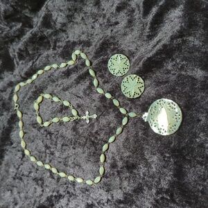Unbranded Mother of Pearl Hand Carved Necklace, Bracelet & Earring Set Jeruselum